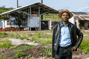 « Nous ne jetons presque rien », explique le gérant de l’usine PREVAC/APM, Jean Pierre Masukesa Kilundu. « Les rafles, les fibres et les effluents sont récupérés et réutilisés pour fertiliser les pépinières et enrichir les parcelles des producteurs. »