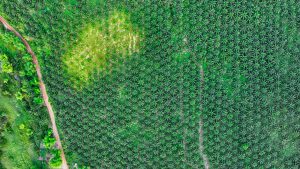 Souvent qualifié d’« agroforesterie », ce dispositif correspond en réalité à un système technique plus précis : l’installation progressive de plantations pérennes de palmier à huile, accompagnées durant leurs premières années par des cultures vivrières intercalaires.